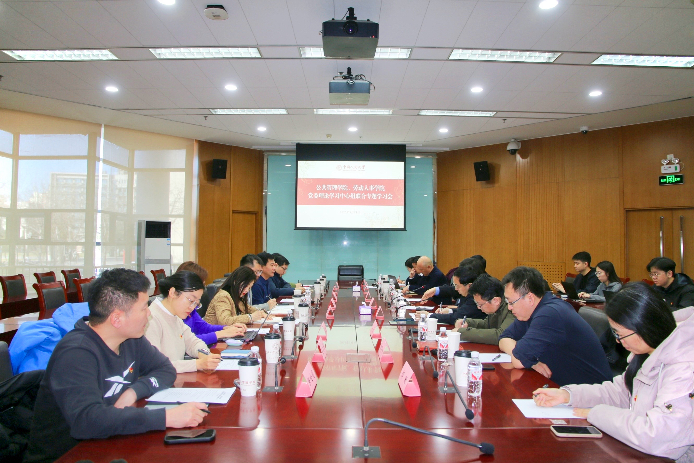 3月18日,公共管理学院党委理论学习中心组、劳动人事学院党委理论学习中心组在逸夫会议中心第一会议室举行联合专题学习会,学习2025年全国两会精神。全国政协委员、国际关系学院院长杨光斌作专题授课,两院所属片区专职组织员王丹、李明奎列席指导,两院党委理论学习中心组成员参加会议。会议由公共管理学院党委书记吉昌华主持。