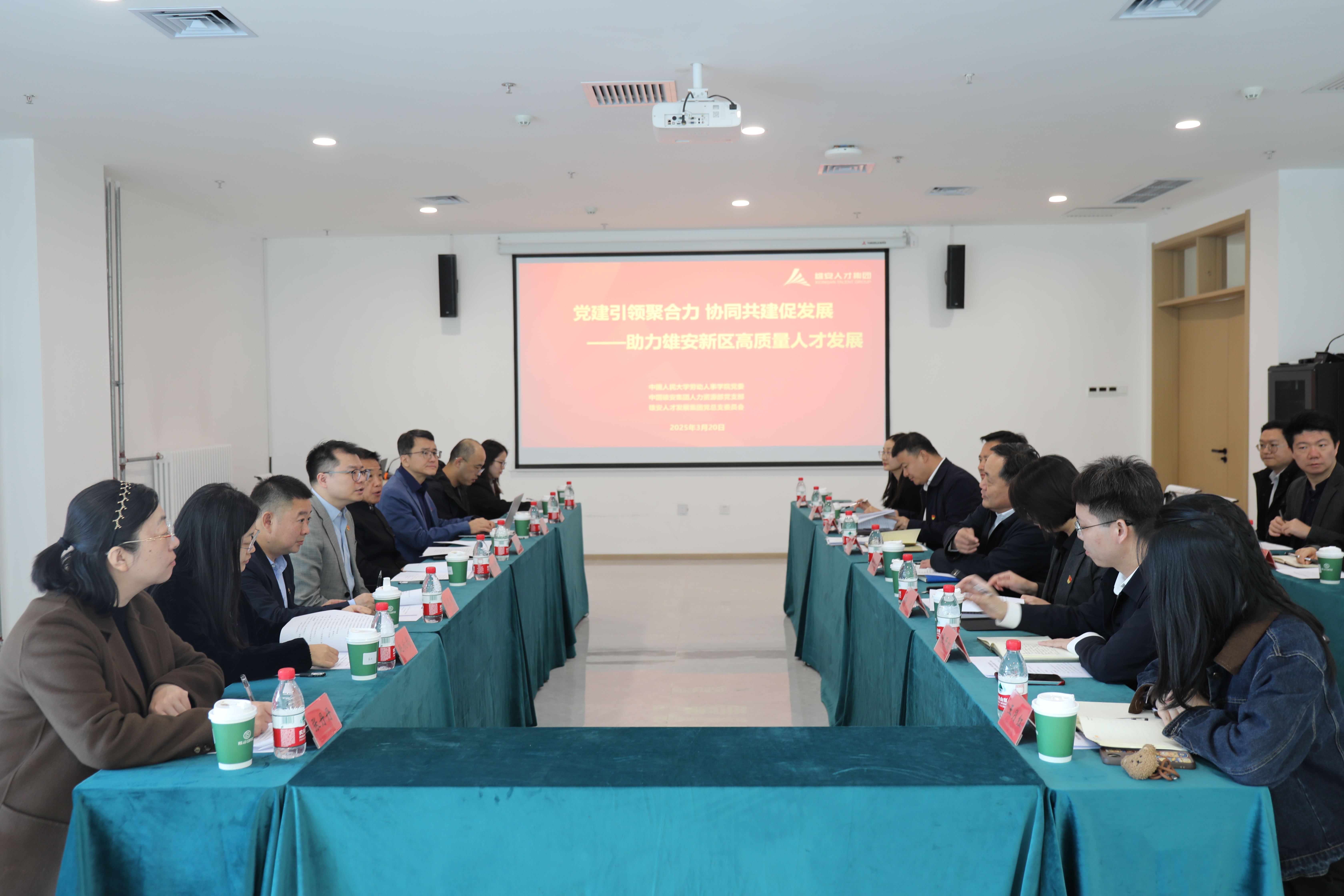 2025年3月20日,中国人民大学劳动人事学院党委与雄安集团人力资源部党支部、雄安人才集团党总支联合开展“党建引领聚合力 协同共建促发展”联学联建活动,通过实地参观、调查研究、交流研讨和专题授课等形式,共同探讨高质量人才发展新路径。劳动人事学院党委书记陈姚,雄安集团党委委员、总经理助理、雄安人才集团党总支书记、董事长刘恩成,雄安集团人力资源部党支部书记、部长张喜山等人出席,相关党员代表参加活动。