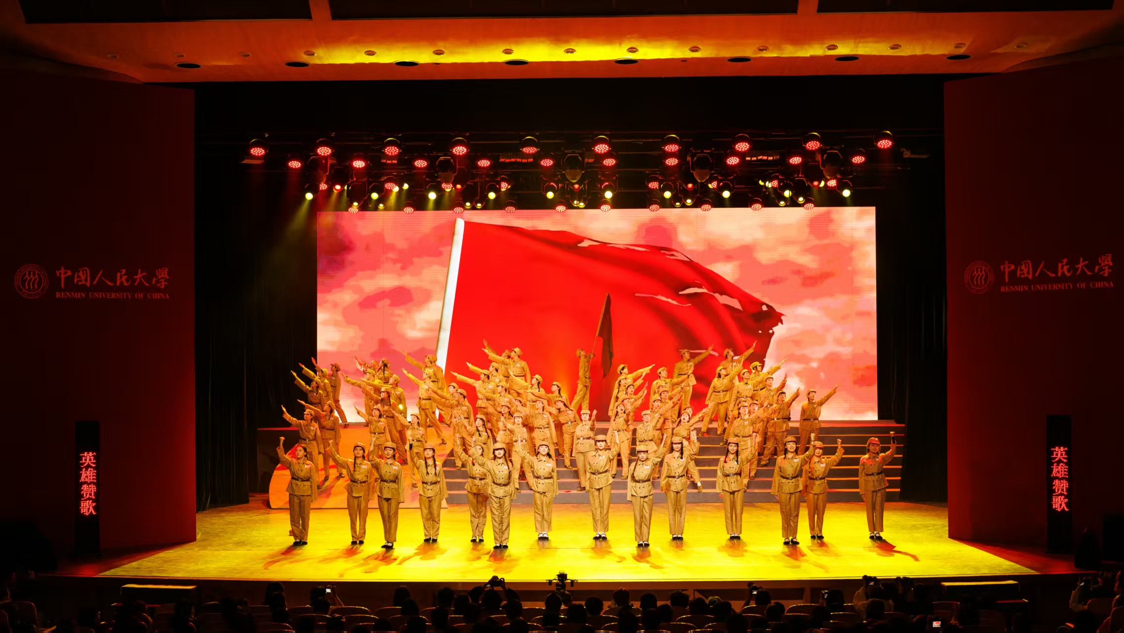 2024年12月15日,中国人民大学《先锋·人大组歌》音乐舞蹈史诗首演在明德堂隆重举行。劳动人事学院的师生们以饱满的热情、精湛的表演和出色的舞台呈现,完美演绎《英雄赞歌》,展现了劳人学子团结奋进、青春昂扬的精神风貌。