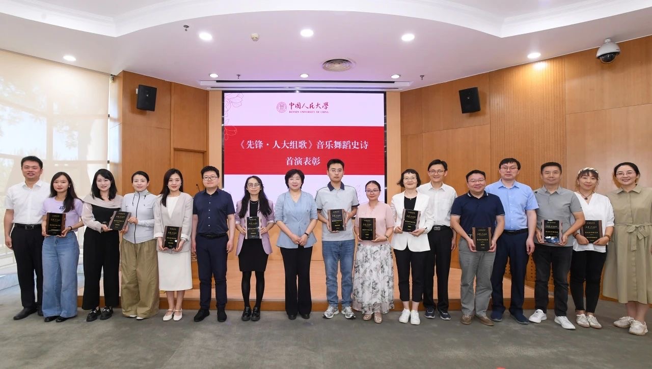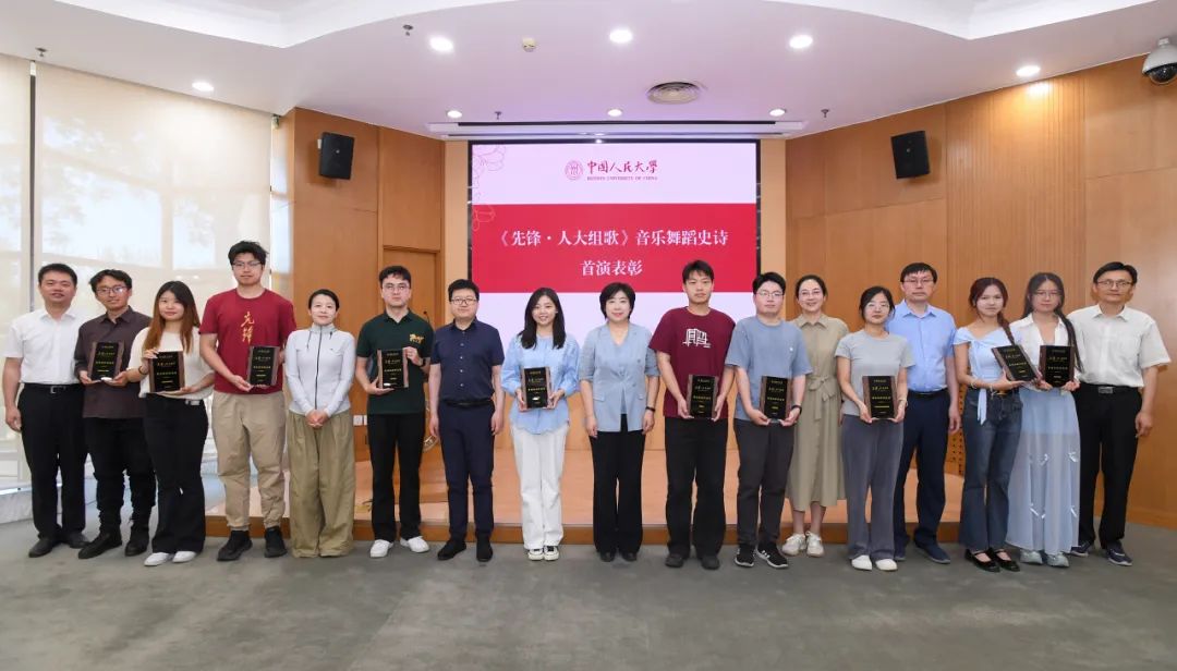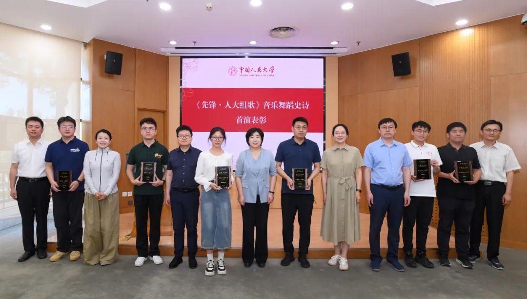 6月6日,在新时代健全德智体美劳全面培养体系研讨总结会议上,学校对《先锋·人大组歌》音乐舞蹈史诗首演中表现突出的参演单位、团体予以表彰,劳动人事学院荣获“最佳组织动员奖”“最具青春活力奖”和“最佳舞台效果奖”。党委副书记、纪委书记郭瑜,团委学生会主席团成员谢栩、吴长雁上台领奖。