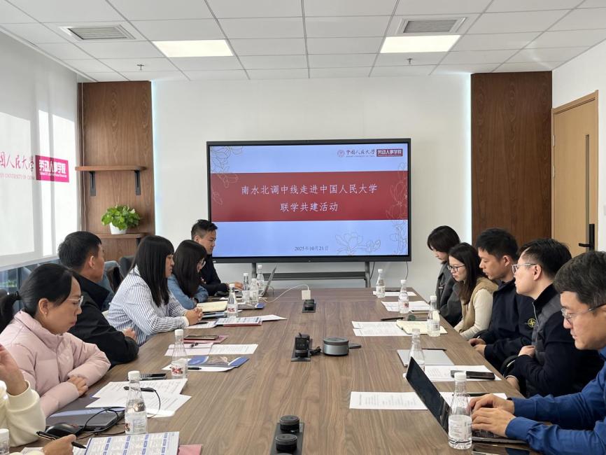 2025年10月21日上午,中国人民大学劳动人事学院与南水北调中线北京分公司、天津分公司、河北分公司在中国人民大学通州校区联合开展“校企合作产教融合联学共建”活动。双方围绕党建引领人才培养、hr使命践行等议题展开深入交流,共同探索国家战略工程人才队伍建设与高校育人实践的协同路径。