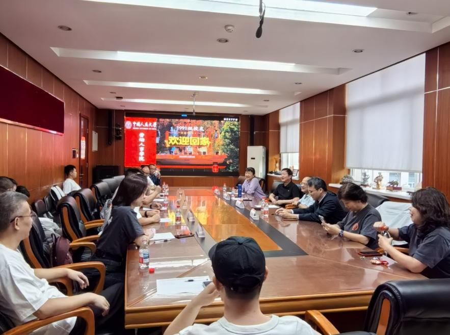 校友们循着旧时记忆陆续步入347会议室。阔别三十载,今朝又重逢,欢声笑语瞬间充盈着会议室的各个角落。校友们回忆当年在人大求学的点滴,那段岁月是大家心中最珍贵的记忆。